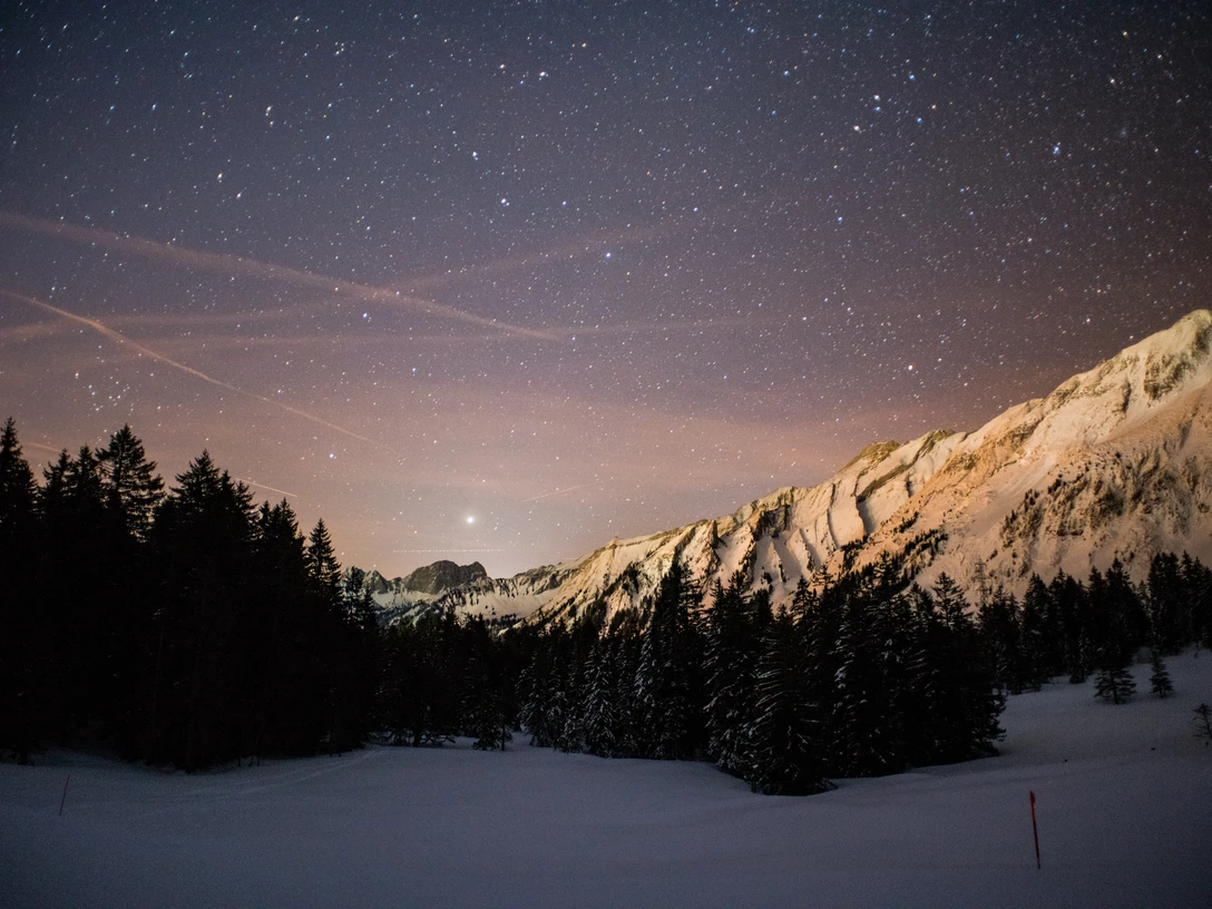 A cozy atmosphere, a flickering open fire and a delicious fondue chinoise à discrétion. That's what awaits you at the Schwarzenegg ski hut on New Year's Eve. Celebrate the turn of the year with your loved ones in the middle of the ski area. Before midnight, we make our way to Rossweid to enjoy the big New Year's Eve fireworks at 00.00 on the dot and toast the year with a Cüpli.