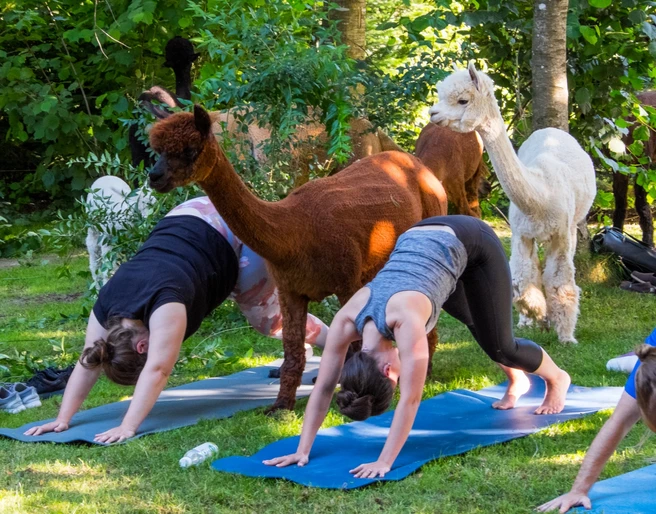 Our yoga teachers are from the region, very well trained and experienced. Alpaca yoga is a special yoga that focuses on nature, the animal, you, peace, concentration on your body and relaxation.