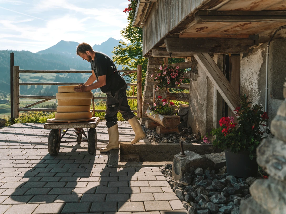 Get to know different facets of our alp! The tour takes you from the cheese vat to the cheese cellar via the salt cellar to the cowshed and lasts around 30 to 45 minutes. It is a pleasure for us to be able to tell you personally what is important to us in cheese production and care. Afterwards, we will tell you about our different types of cheese during a tasting session in our converted cheese dairy.